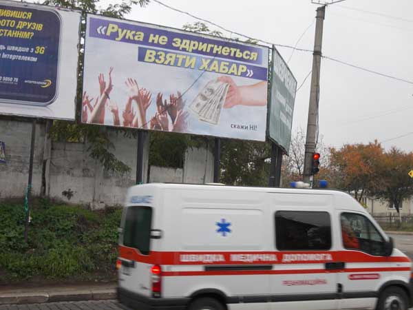 В Івано-Франківську на початку вулиці Вовчинецької з'явилися білборди з написом "Рука не здригнеться взяти хабар. Скажи ні!"