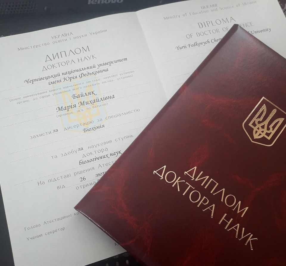 Днями науковиця отримала диплом доктора наук. Про це Марія Байляк повідомила у соцмережі:
