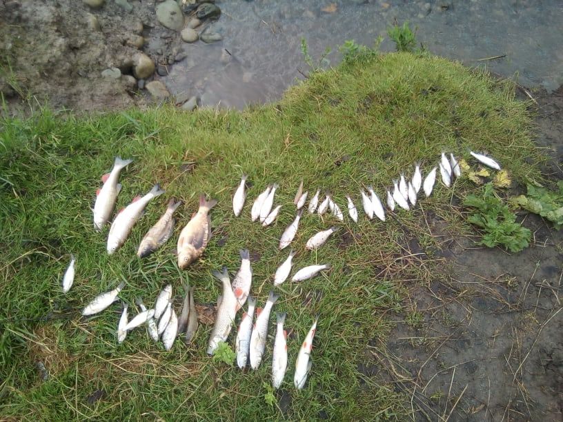 “Дуже багато мертвої риби, ми визбирали не всю, ще є далі по течії. Риба різного виду і розміру – короп, карась, клин, окунь, головень, верхоплавка та інша”, — уточнив депутат Верхнянської ОТГ Іван Філіпович в коментарі виданню.