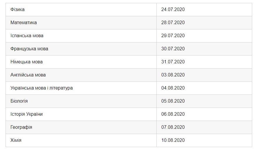 У 2020 році тестування додаткової сесії пройдуть за таким графіком: