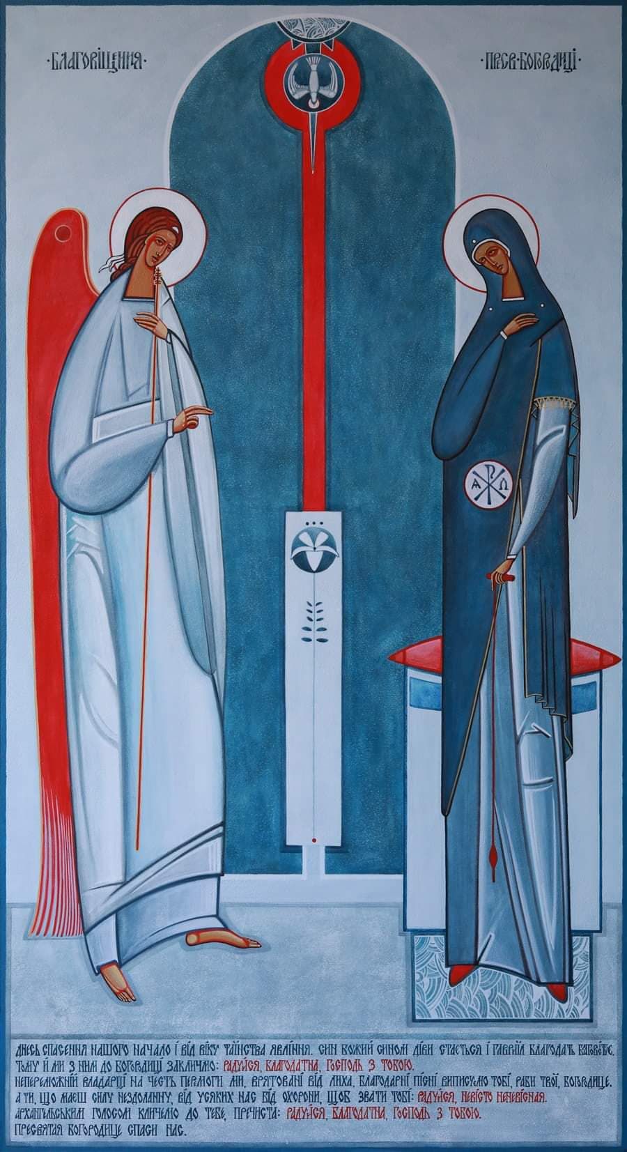 "Після того, як написала ікону «Благовіщення», то дізналася, що перебуваю при надії. Це, направду, диво і Божий знак. Та передісторія — не менш цікава. По закінченні академії я вийшла заміж і в своїх молитвах яообіцяла собі та Богу, що коли буду вагітною, то писатиму ікони, а замовлень у мене тоді не було. Через пів року я отримала замовлення на написання ікон до майбутньої каплиці. Не важко здогадатися, що першою іконою, яку я повинна була виконати — ікона «Благовіщення Пресвятої Богородиці». У жовтні 2017 року, коли ікона була завершена, дізналася, що буду мати дитину. Усю вагітність я працювала над іконами і продовжую донині. Я дотримала своєї обіцянки, сама цього не розуміючи. Ось так віра та молитва здатні творити дива. До речі, я не одразу це зрозуміла. Тільки готуючись до власної персональної виставки ікон «Моління», яка відбулася в квітні минулого року в музеї «Бойківщина», все зійшлося. Це було як прояснення. Відтоді я точно знаю, чим повинна займатися в житті. Іконопис — це моя дорога".