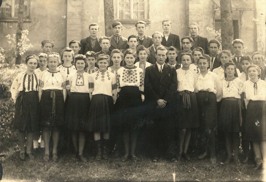 9 клас калуської білої школи. Віра Дякон – друга ліворуч у другому ряду. Калуш, друга половина 40-х рр. ХХ ст.