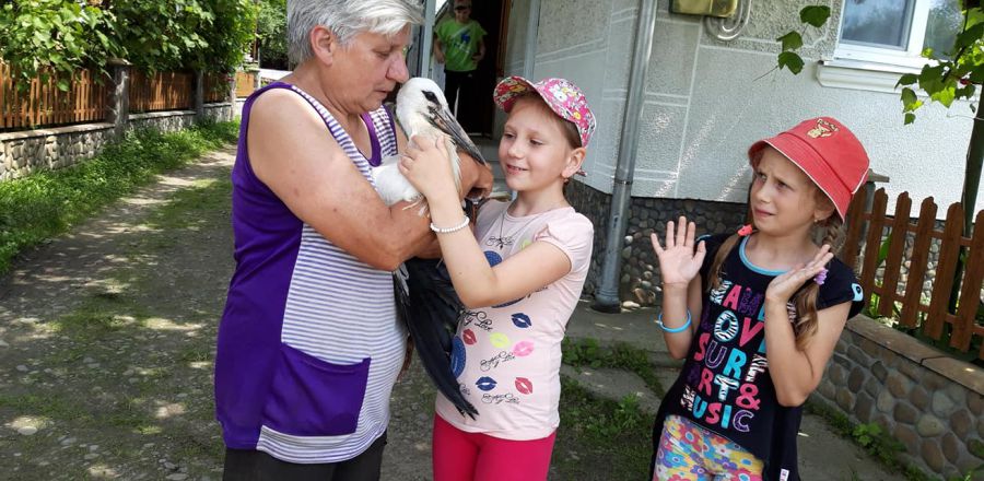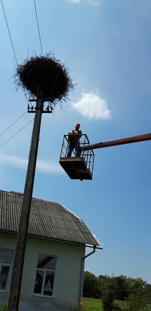 "Директор КП "Калушавтодор" Микола Барченко — людина чуйна і милосердна — прислав до села автовишку. Кілька хвилин роботи вправного водія Ярослава та місцевого жителя Миколи — і лелека-бешкетник уже вдома. Всі задоволені, що лелеча пригода закінчилась щасливо", — розповіла Марія Стасюк.