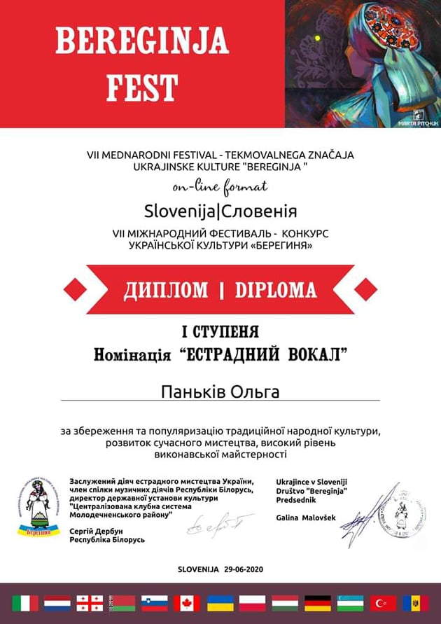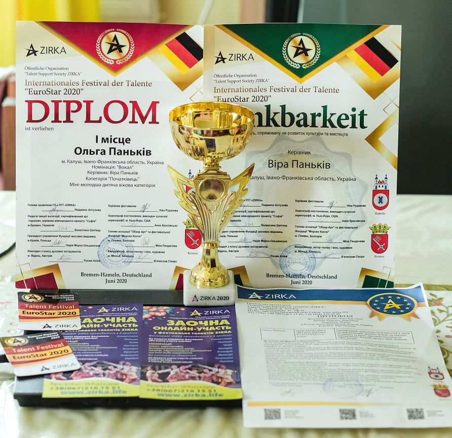 Днями Оля отримала також І премію на Міжнародному фестивалі "EuroStar — 2020", м. Бремен, Німеччина. Фестиваль проходив у три етапи: