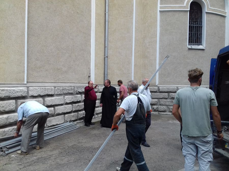 З благословення настоятеля храму о. Івана Бігуна з Божою поміччю та завдячуючи пожертвам небайдужих парафіян та меценатів розпочались будівельно-відновлювальні роботи та реставраційні. А саме: суцільне перекриття даху храму, будівництво панахидної кімнати, завершення реставрації Притворних стін храму, довгоочікуваний ремонт сходів, повідомили "Вікнам" у пресслужбі парафії святого Архистратига Михаїла.