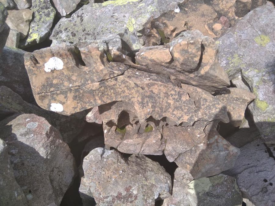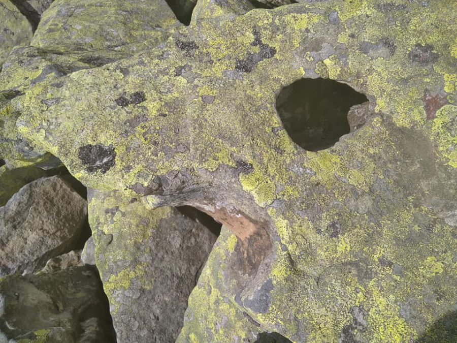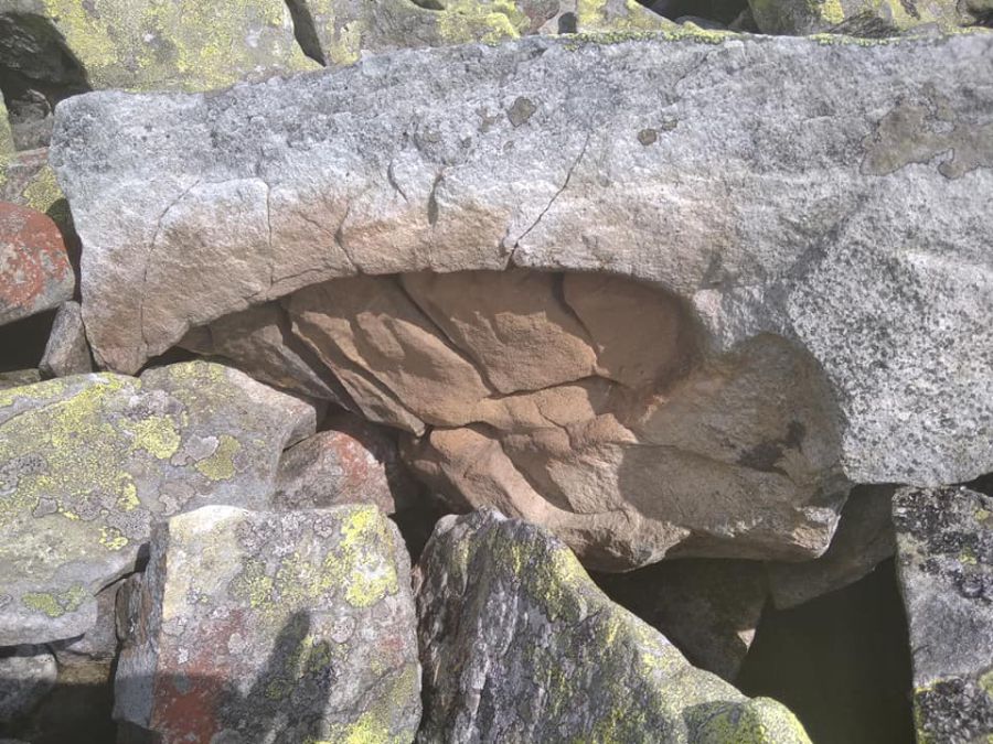 "Сліди від блискавки на камінні під г. Висока, напевно одна з вершин в Карпатах, де повсюдно сліди від ударів".