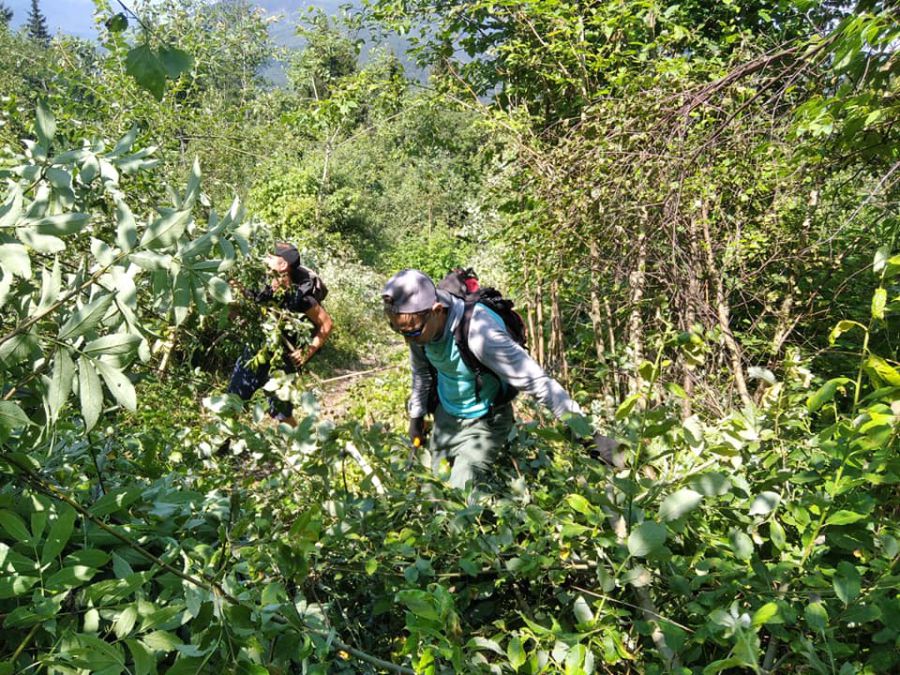 Калушанам вдалося прорізати проблемний відрізок заростей верболісу. Стежка, якою проходив маршрут, який через вирубку заріс. Періодично туристи на даному відрізку втрачали орієнтування, блукали та травмувались, зауважує в соцмережі Василь Фіцак.