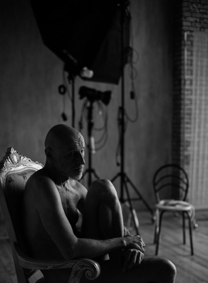 "У мене колись була фотосесію «ню», ще коли ви були молоді-молоді і вам на це не дозволяли дивитися старші. Тоді ще не було Фейсбуку. Ми з Ростиком Шпуком зробили приятельську хуліганську фотосесію. Вона отримала розголос і потрапила в журнал «Публічні люди». Тоді сама Наталія Влащенко особисто брала у мене інтерв’ю. Але це була спонтанна хуліганська витівка, а мені хотілося зробити хорошу сесію «ню». Я так довго цього хотів, що постарів. Мені минулого року було 57 і я, нарешті, знайшов фотографа Настю Тєлєкову. Я зрозумів, що з нею можу це зробити. Ми довго це планували і, нарешті, ще до пандемії це зробили. Задумка була така: зробити два сети робіт. Одні, які могли би експонуватися на виставці: еротика, тіло косплей скульптур, а друга серія — для книжки. Це мало бути майже порно або жорстка еротика без усілякої цензури".