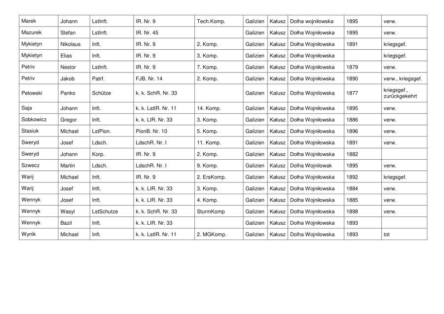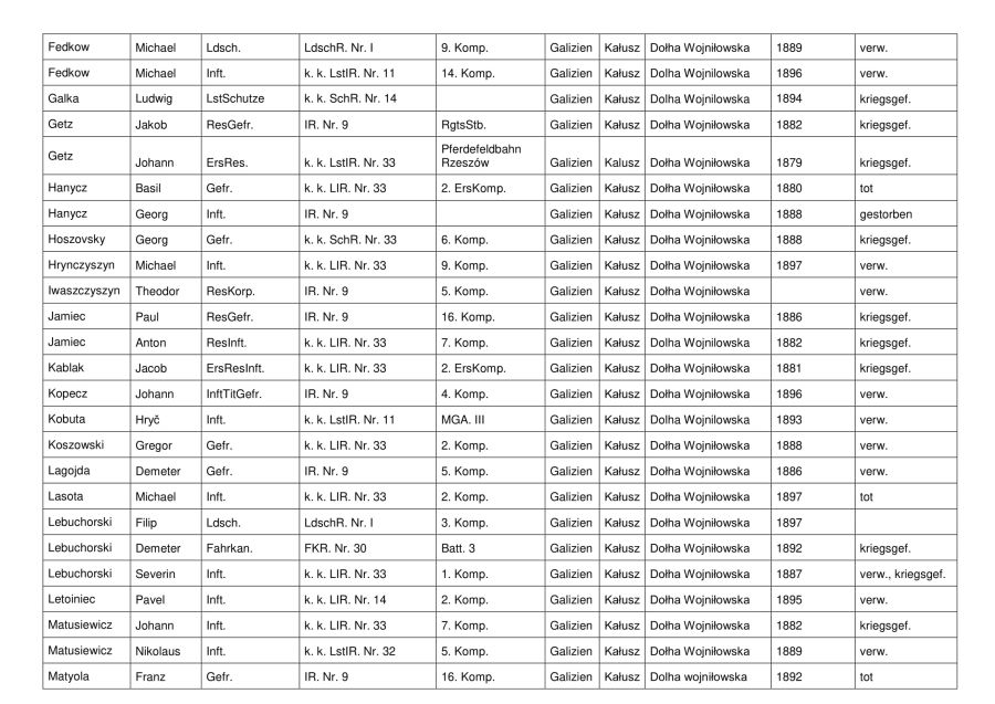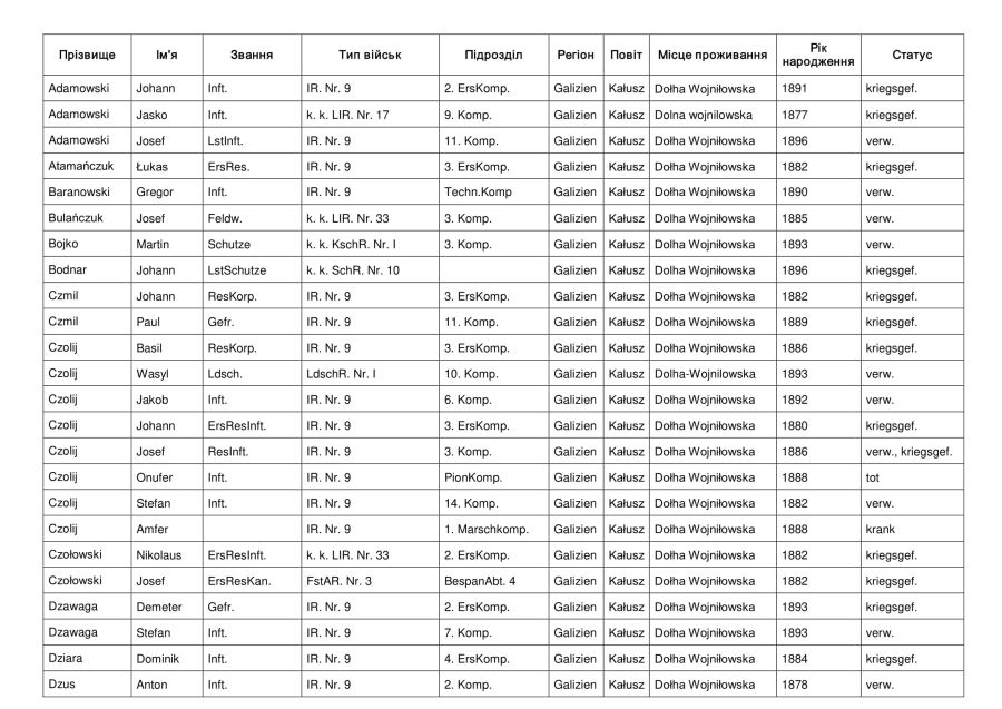Пропонуємо список жителів села Довгий Войнилів у Першій світовій війні: