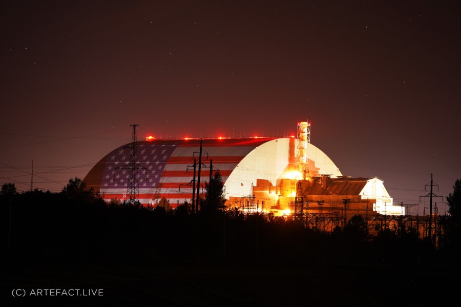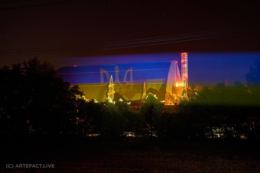 За підтримки Міністерства захисту довкілля та природних ресурсів України, Державного агентства з управління зоною відчуження, ДСП «Чорнобильська АЕС» та ДП «Центр організаційно-технічного і інформаційного забезпечення управління зоною відчуження», митці проєкту ARTEFACT цією інсталяцією привітали зі святами країну.