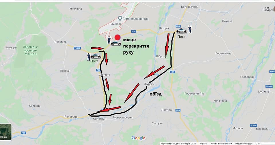 Також з метою інформування та для об’їзду виставлено пост на трасі Н-09 «Мукачево — Івано-Франківськ — Львів» (на перехресті з автошляхом Р-38).