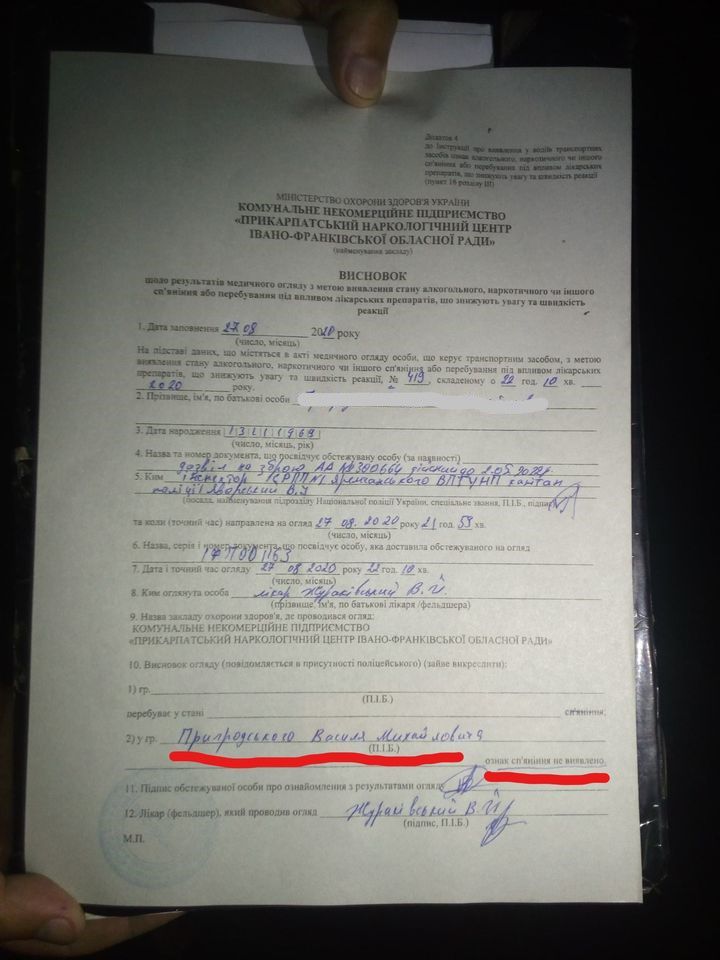 Не зважаючи на затягування часу, всі учасники інциденту прибули до Івано-Франківська в Прикарпатський наркологічний центр, де мали взяти у погрожувача аналізи та провести тест на сп’яніння. Результат здивував, пише у соцмережі Олександр Соколовський: