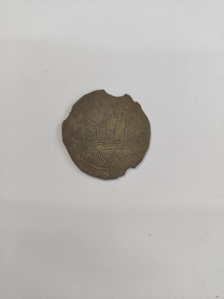 На монетах Святополка Ярославича княжий знак має вигляд не тризуба, а двозуба.