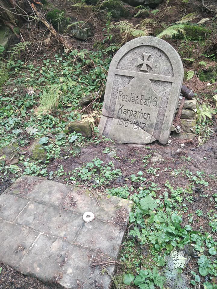 "Карпати, з часів Першої світової війни. Декілька років тому вдалось натрапити на цікавий пам'ятний знак тих часів. Плита була розколотою і лежала в лісі. Тож з класними хлопаками вирішили її встановити на місце та склеїти. В цій гірській місцевості з 01.07. 1916 — 18.08.1917 р. дислокувався резервний мисливський батальйон (Reserve Jager Bataillon Nr. 6). Тож, солдати батальйону залишили згадку про місце свого перебування", — йдеться в дописі.
