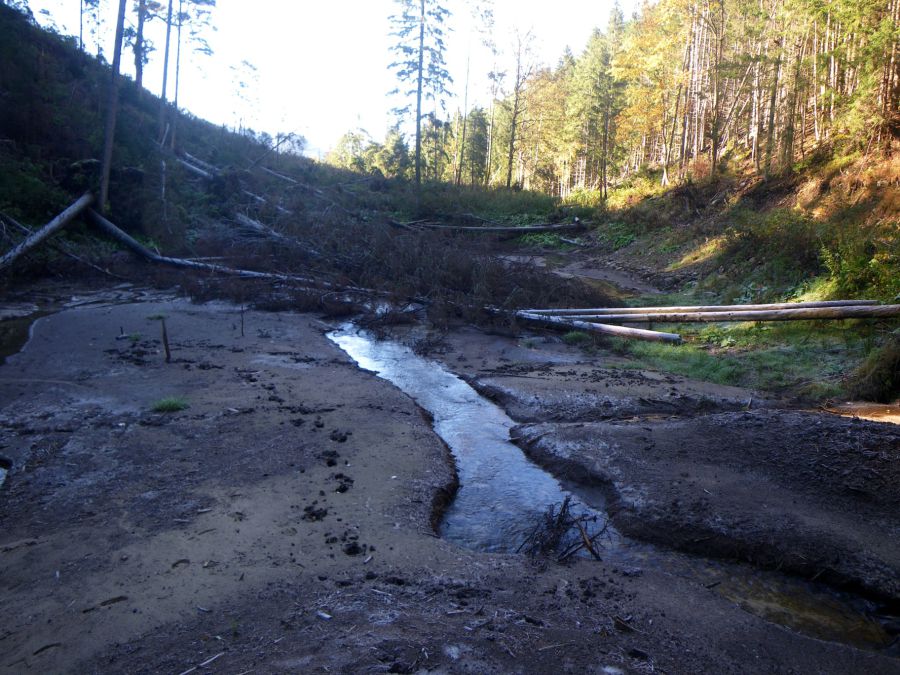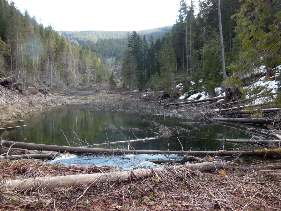 Десятки смерек лежали впоперек озера, заважаючи активістам закласти мішками діри в дні