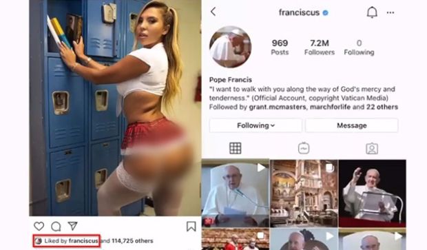 Офіційна сторінка Папи Римського в Instagram вподобала фото бразильської моделі, яка була вбрана у шкільну форму з частково оголеними сідницями.