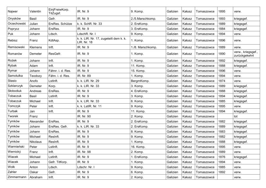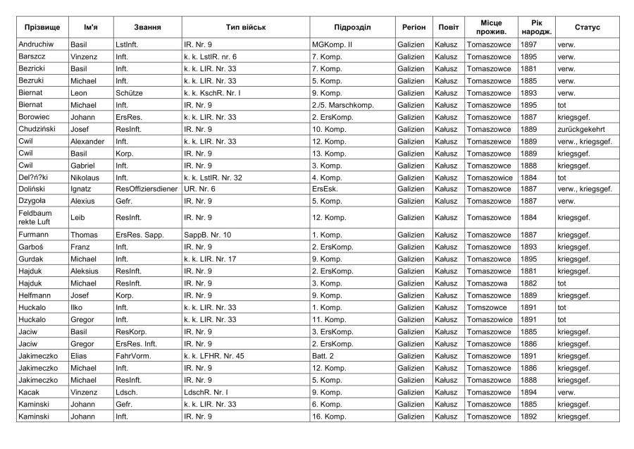 Пропонуємо список жителів Томашівців у Першій світовій війні: