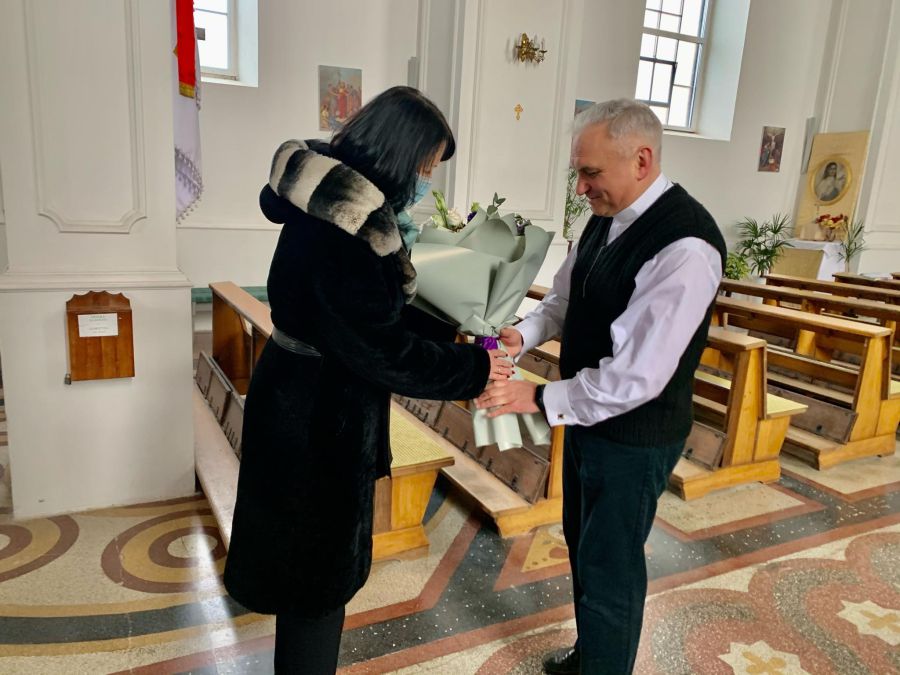 У своїх привітаннях посадовиця висловила глибоку повагу і щиру вдячність за невтомну та сумлінну працю отця Романа на славу Божу та на благо громади, а також побажала міцного здоров'я, Божої допомоги у духовній діяльності та многих літ життя.