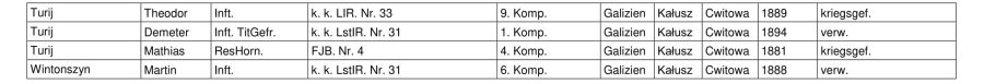Пропонуємо список жителів Цвітової в Першій світовій війні: