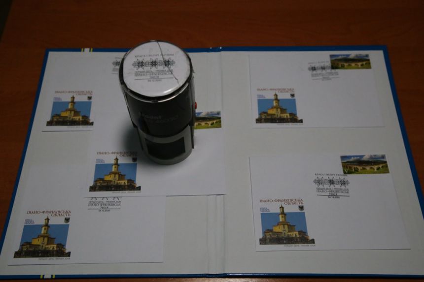 Принагідно зазначимо, що поштовий блок № 182 «Івано-Франківська область» складається із чотирьох марок, на яких зображено гуцульське весілля, церкву Різдва Богородиці XVII-XVIII століть у селищі Ворохта, Скелі Довбуша та миску, розписану О. Бахматюком у XIX столітті. Тираж блоку складає 20 тисяч примірників. Номінал кожної марки — 9 гривень.