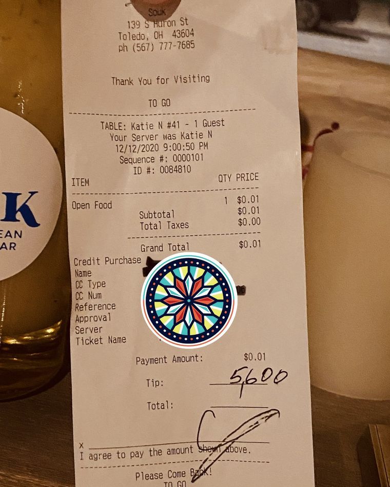 Відвідувач обідав у Souk Mediterranean Kitchen у місті Толедо 12 грудня. Кожен співробітник отримав по 200 доларів. Власник і шеф-кухар закладу Мусса Саллух розповів виданню, що співробітники плакали, коли дізналися про подарунок.