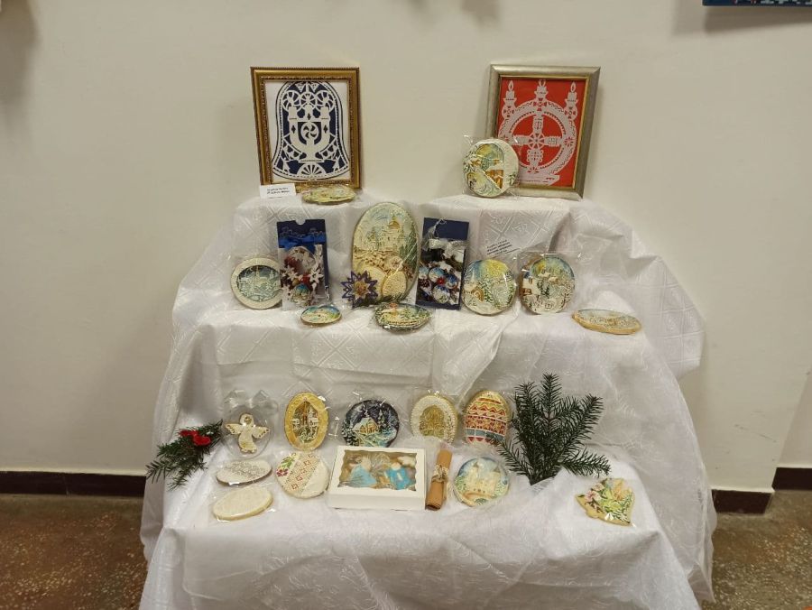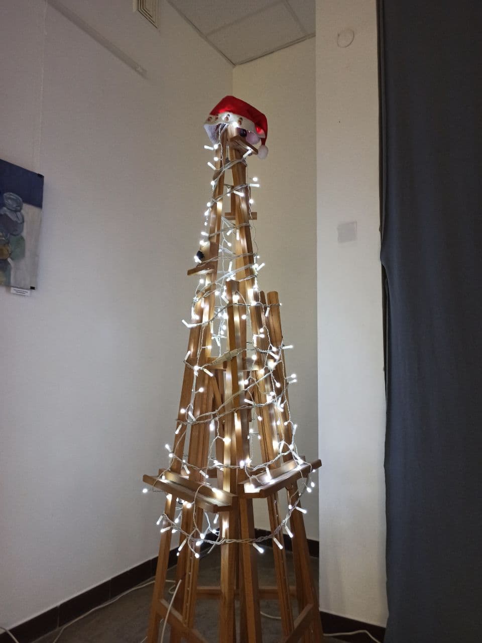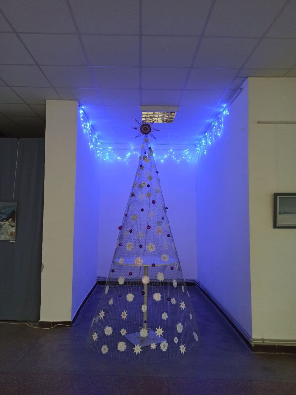 У виставковій залі на вул. Дзвонарській, 5 цьогоріч встановили елегантну і креативну ялинку. Автори — Стефан Бака, Галина Турчик та Володимир Романів.