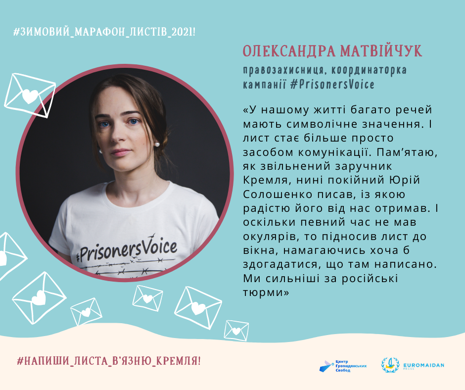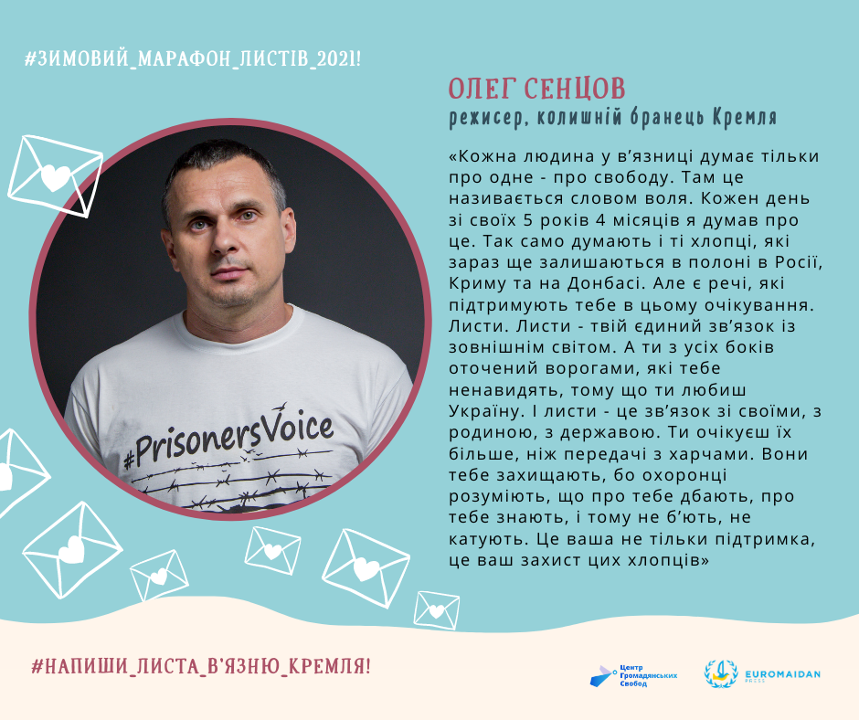 Організатори закликають зробити фото листа або селфі з підписаною листівкою, опублікувати в соцмережах із хештегами #ЗимовийМарафон #WinterMarathon #LetMyPeopleGo #PrisonersVoice та запросити друзів долучитися!