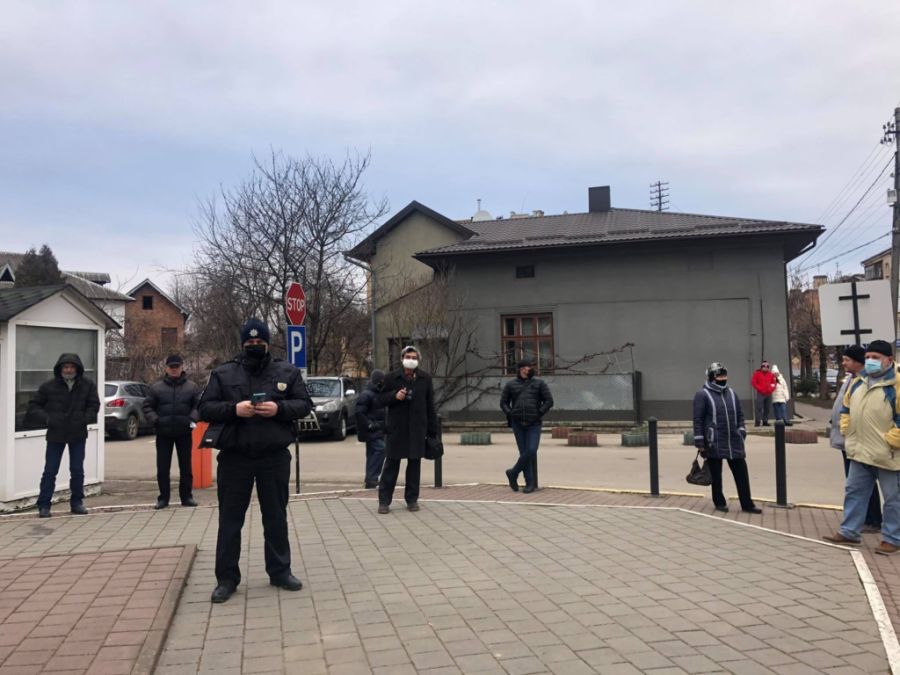 У Тисмениці сьогодні зранку приблизно стільки ж людей зійшлися до адмінбудівлі.
