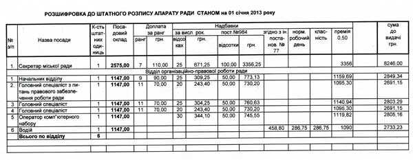 Аби переконати депкорпус у тому, що посадовці виконавчого комітету міської ради заробляють не так уже й багато, депкорпусові надали роздруківки заробітних плат з надбавками і преміями — починаючи від міського голови із заступниками і закінчуючи водіями та прибиральницями.