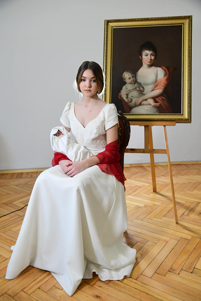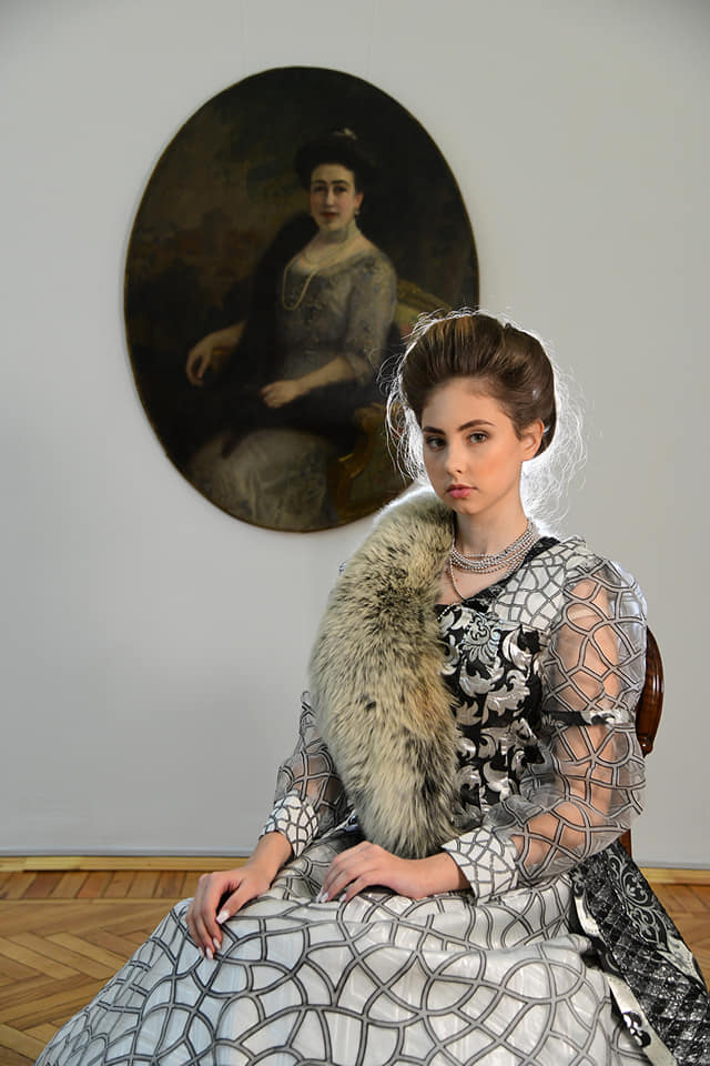 "Важливим етапом реалізації задуму вважаємо віднайдення візуальної схожості моделі з образом з портрету та його «приміряння» чи обігравання: повторення пози, жестів, вбрання в його загальних рисах. Це практика, спрямована на переживання суб’єктивного досвіду шляхом аналітичного сприйняття: від предмета до образу. Вона вимагає концентрації уваги на деталях, що, як правило, лишаються непоміченими: зачіски, прикраси, фасони вбрання, фактура тканини", — кажуть у музеї.