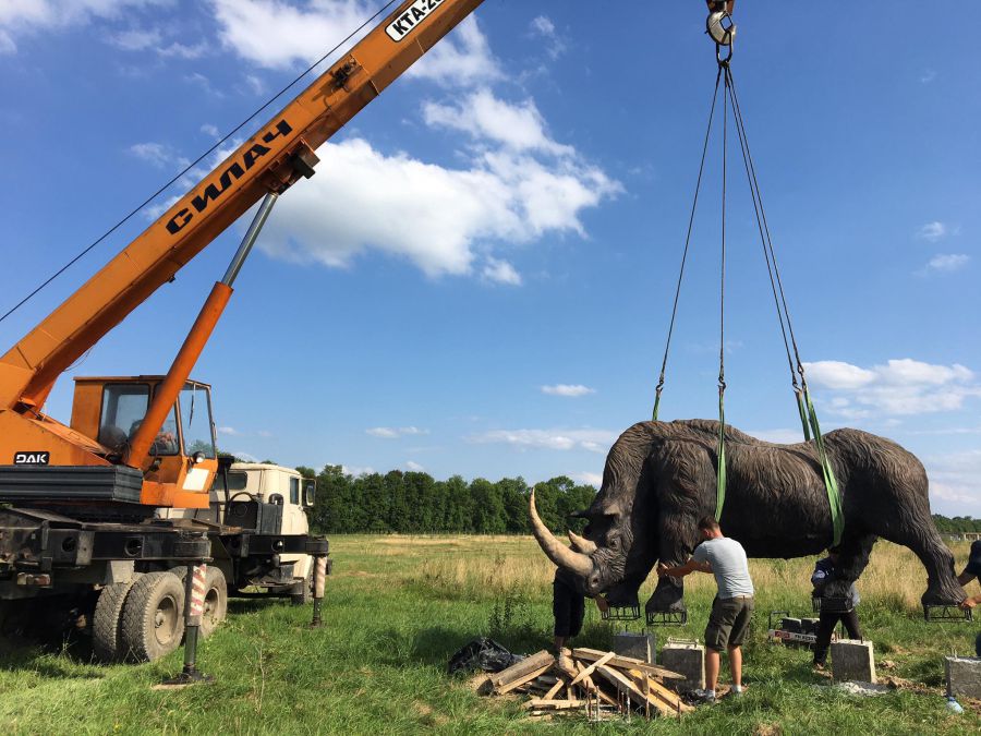 Дмитро: Носоріг вважається найкраще збереженою знахідкою у світі. Навіть внутрішні органи збереглися. У Львові також зберігається скелет мамонта, знайденого теж у Старуні... Наше завдання розповісти про це місце. Але без замовників не було б таких великих скульптур. І ми дуже вдячні, що замовники в нас повірили.