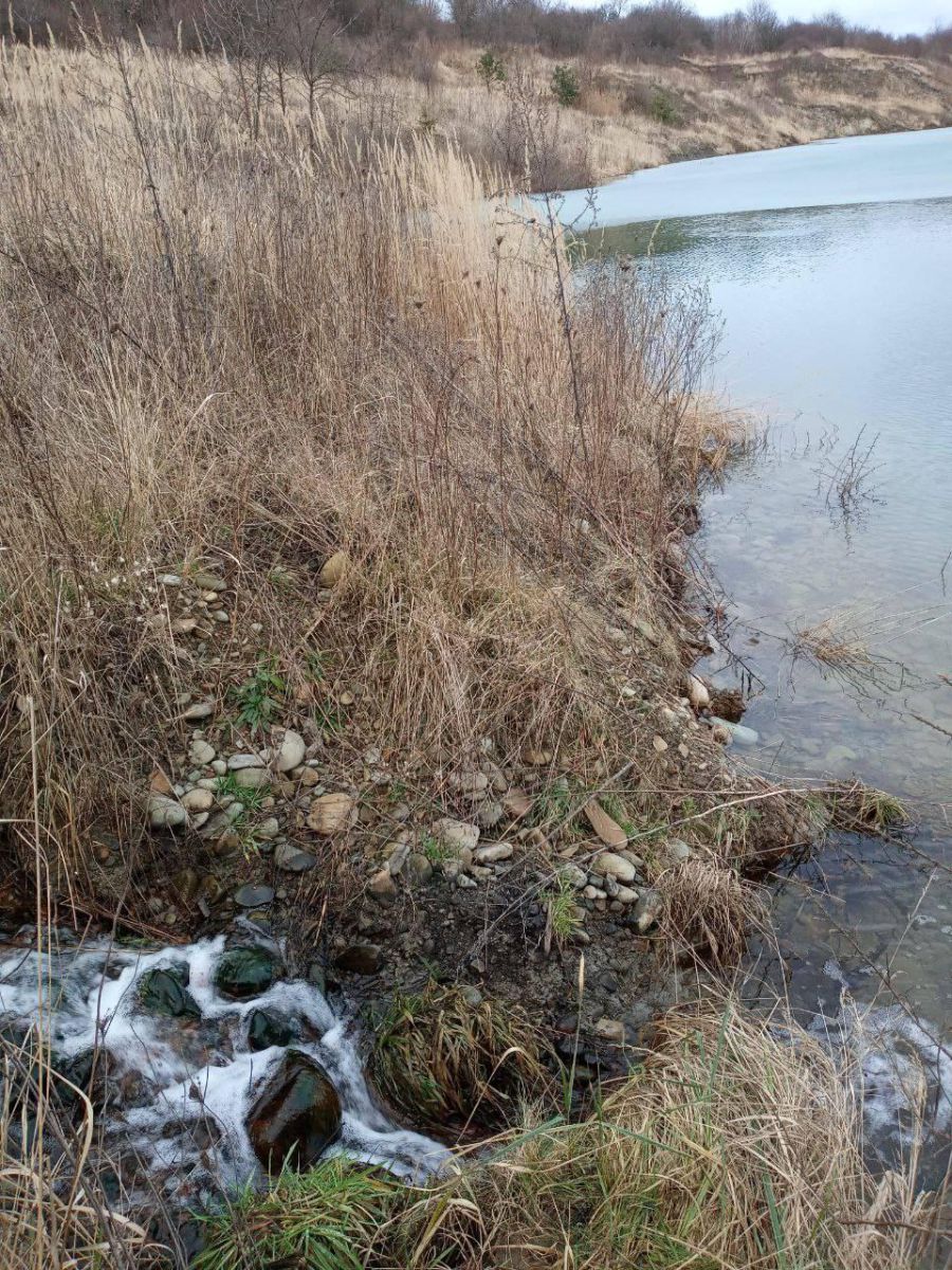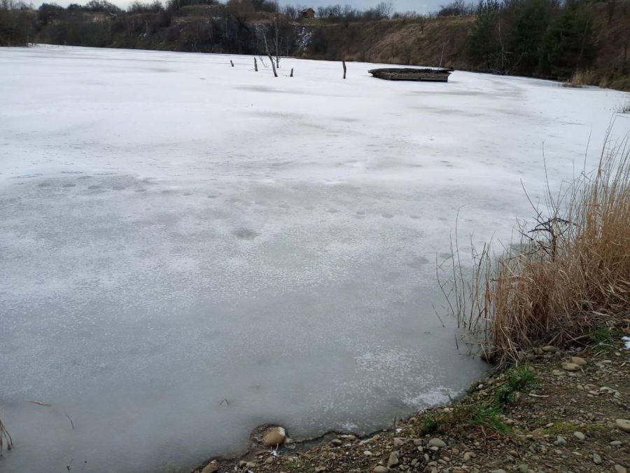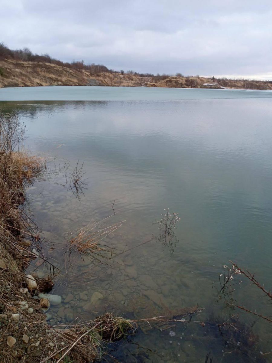 Півострів з закинутою насосоною станцією тепер вже острів (на який ще можна перестрибнути, хоча і небезпечно). На кар'єрному озері після морозів де-не-де сформувався навіть тонкий лід, на який злітаються великі зграї птахів.