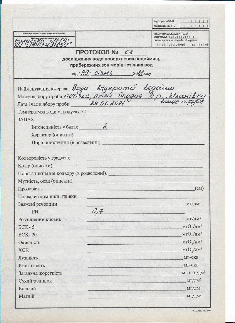 Візуальним обстеженням виявлено, що забруднені води, ймовірно, витікають із залізобетонної труби в потічок з подальшим потраплянням в Млинівку.