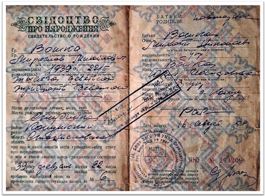 Свідоцтво про народження Мирослава Вошка