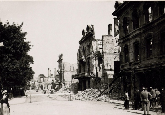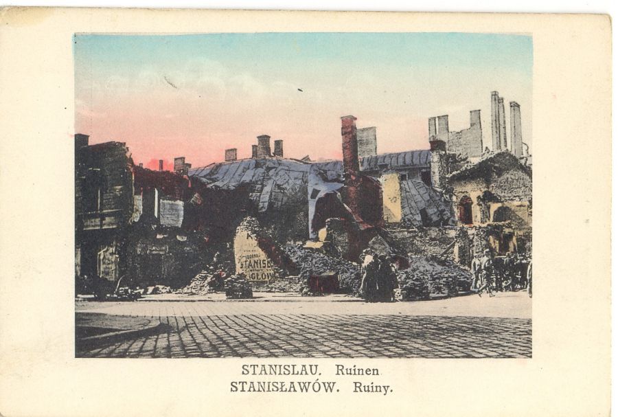 Особливо дісталось середмістю. Збереглося багато старих поштівок і фото з видами центральних районів міста, понищених гарматним вогнем. Окраса Станиславова, знаменита Лінія А-Б, практично припинила існування. Від величних триповерхових кам’яниць, які тягнулись уздовж сучасного Вічевого майдану від вулиці Бачинського до Галицької, залишились обгорілі коробки. Не краща картина була й з протилежного боку кварталу. Парний бік вулиці Костюшка (тепер Сотника Мартинця) перетворився на купу каміння.