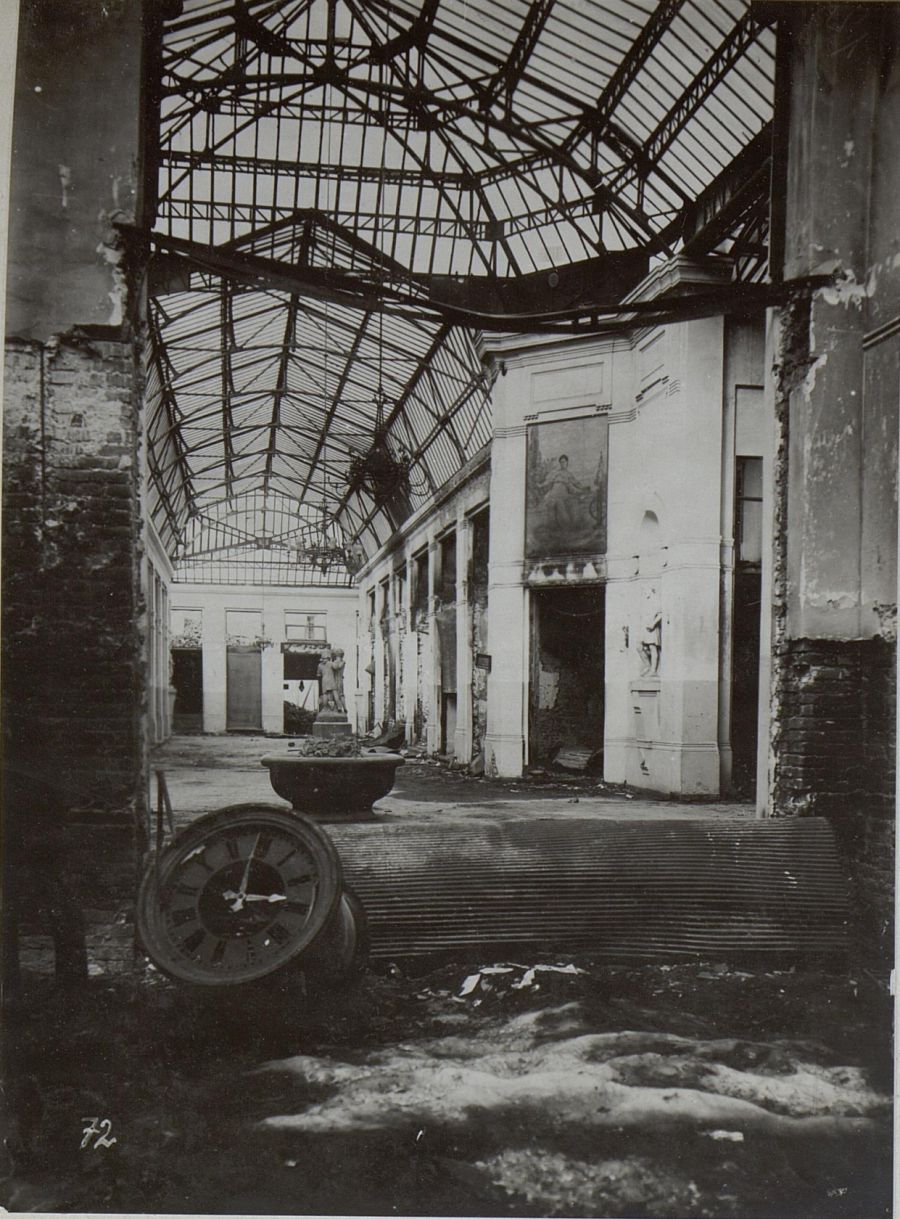 Яким чудом він зберігся? Насправді, жодного чуда. Сусідні кам’яниці мали по два-три поверхи. При влучанні снаряду руйнувались перекриття і будинок «складався». А пасаж був одноповерховий, мало того — мав скляний дах, що тримався на арматурі. Якщо гарматний снаряд і залітав всередину, він просто розбивав скло і вибухав у порожньому залі. На світлинах видно, що торговий зал не дуже постраждав. Основний удар мужньо прийняла на себе кав’ярня «Едісон».