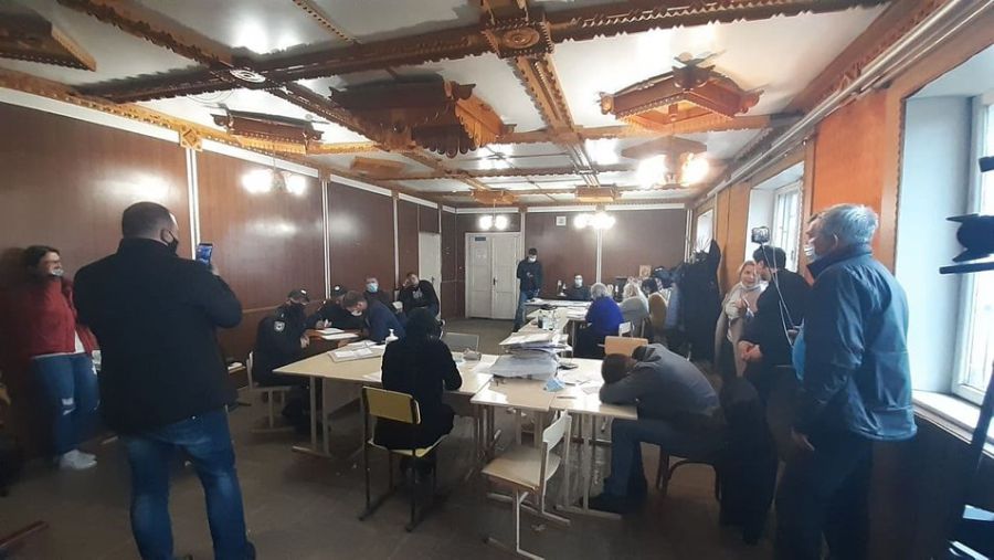 О 5-їй ранку, каже Артур Доронін, у приміщення ОВК приїхали працівники СБУ. Вони вивели усіх. До того у приміщенні комісії встигли встановити відеокамеру, яка знімала коридори. Людей у приміщення ОВК впустили вже в 11-й годині. Тоді члени комісії виявили, що карта пам’яті у камері порожня, а в приміщенні серверної мішки з документацією стоять не так, як їх залишали.