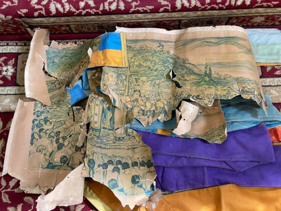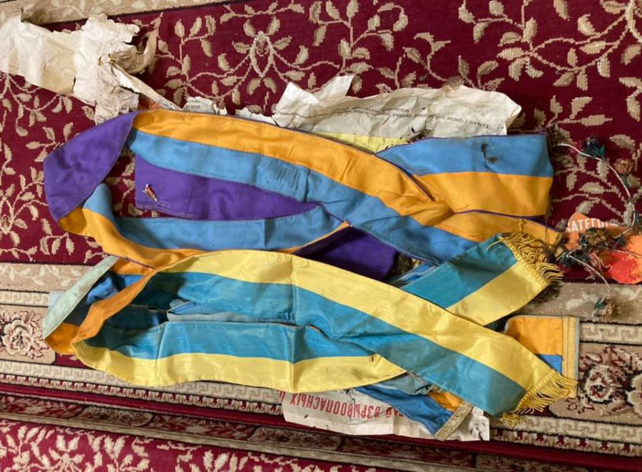 Він розгорнув папір і побачив справжній скарб — 7 синьо-жовтих стрічок, якими пов’язували через плече осіб, котрі тримали церковну процесію.