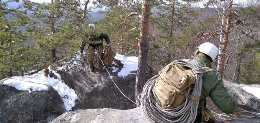 — Це заняття в межах нашого літнього блоку, — розповів головний спеціаліст відділу фізичної підготовки управління доктрин і індивідуальної підготовки Головного управління доктрин та підготовки ГШ ЗСУ Микола Шевяков. — Насамперед навчаємо учасників пересуватися скелями. Для цього обрали Скелі Довбуша, які відомі ущелинами та крутими гірськими стежками. Їхня висота — до 50 метрів. Кути — від 70 до 90 градусів. Тобто практично вертикальний підйом. Аби легше уявити складність завдання звичайній людині, наведу таке порівняння: скеля висотою 50 метрів — це як шістнадцятиповерховий будинок. Під час курсу навчаємо учасників успішно підійматися і спускатися. Найголовніше тут — безпека. Тож багато уваги приділяємо навичкам страховки, альпіністським технікам. Упродовж курсу учасники навчаються організовувати навісні переправи, здобувають навички виживання в горах та автономної діяльності.