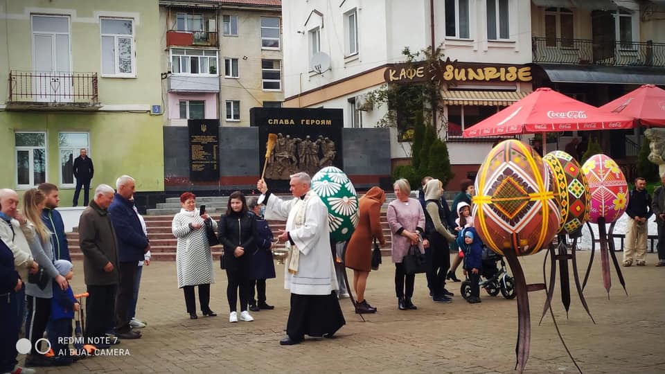 Священнослужителі міста привітали всіх зі світлим святом Воскресіння Господнього та окропили присутніх освяченою водою.