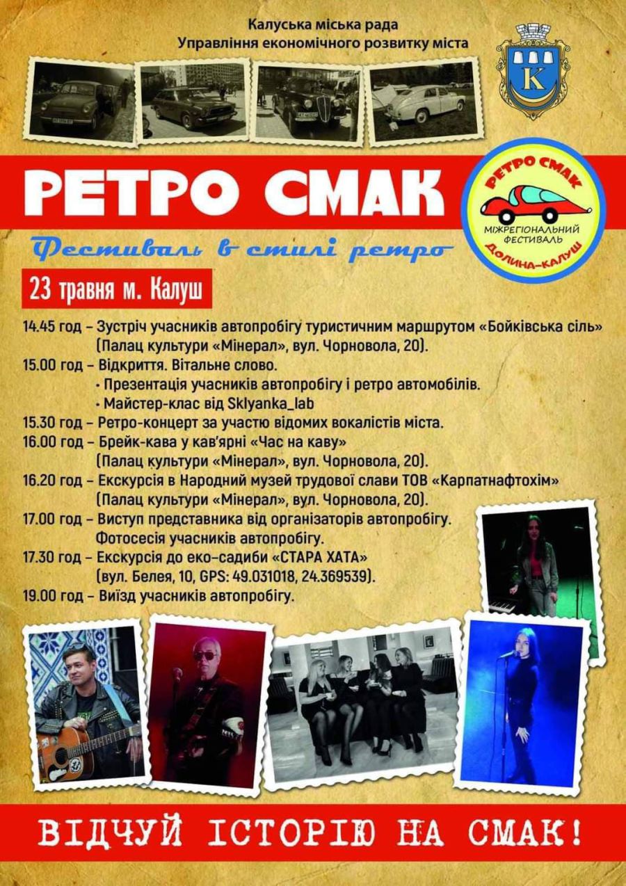 - 15.30 — Ретро-концерт за участю відомих вокалістів міста Калуша.