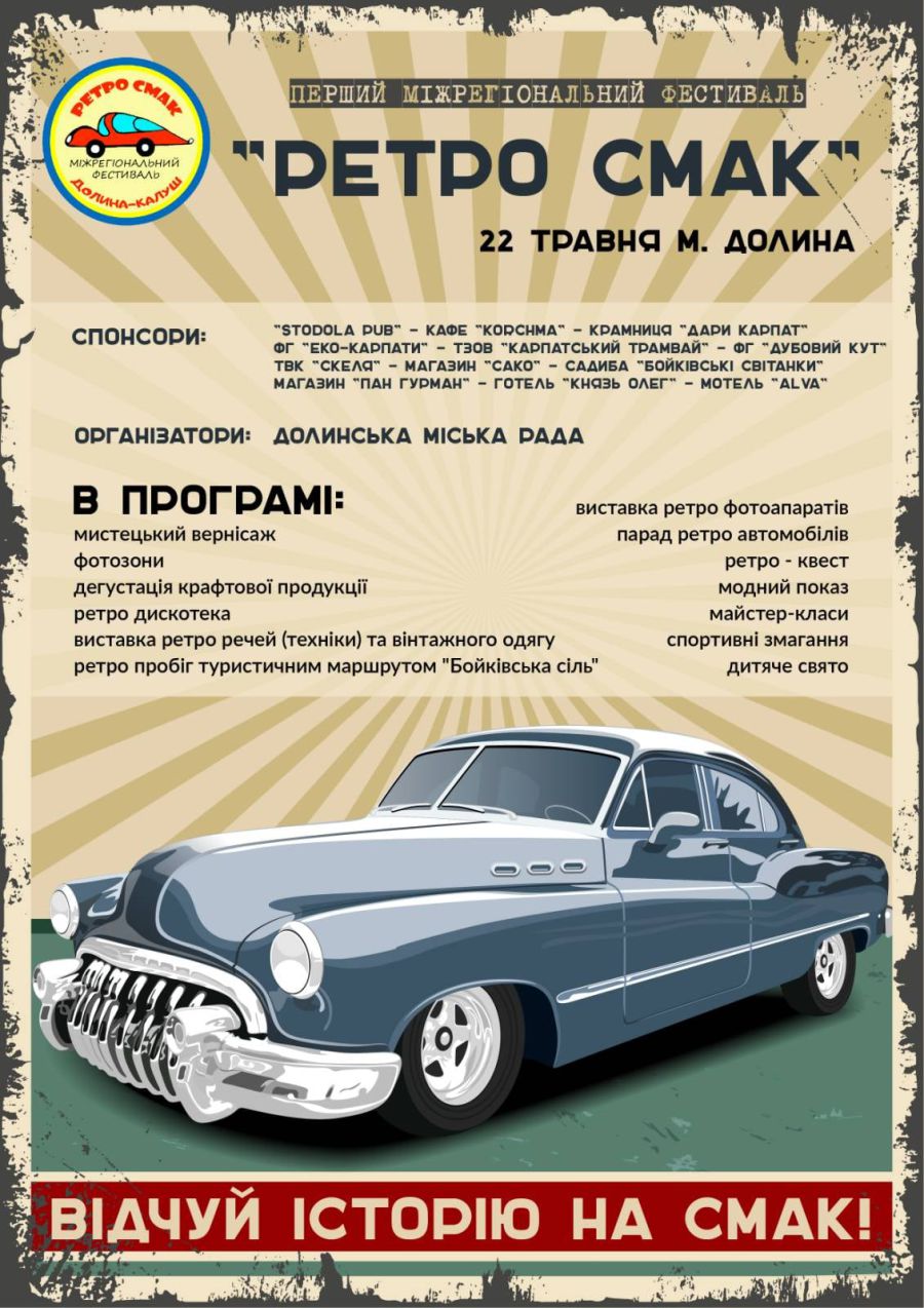 Фестиваль «Ретро смак» — це культурно-туристичний проєкт, який вперше відбудеться на території трьох громад, інформують "Вікна".