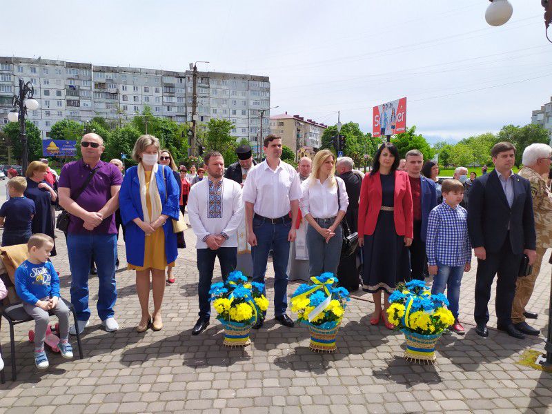На завершення заходу представники влади поклали квіти до пам’ятника генерал-хорунжому Роману Шухевичу, пам’ятного знаку Небесній Сотні та до пам’ятного стенду загиблим та зниклим безвісти військовослужбовцям Калущини під час боїв на Сході України.