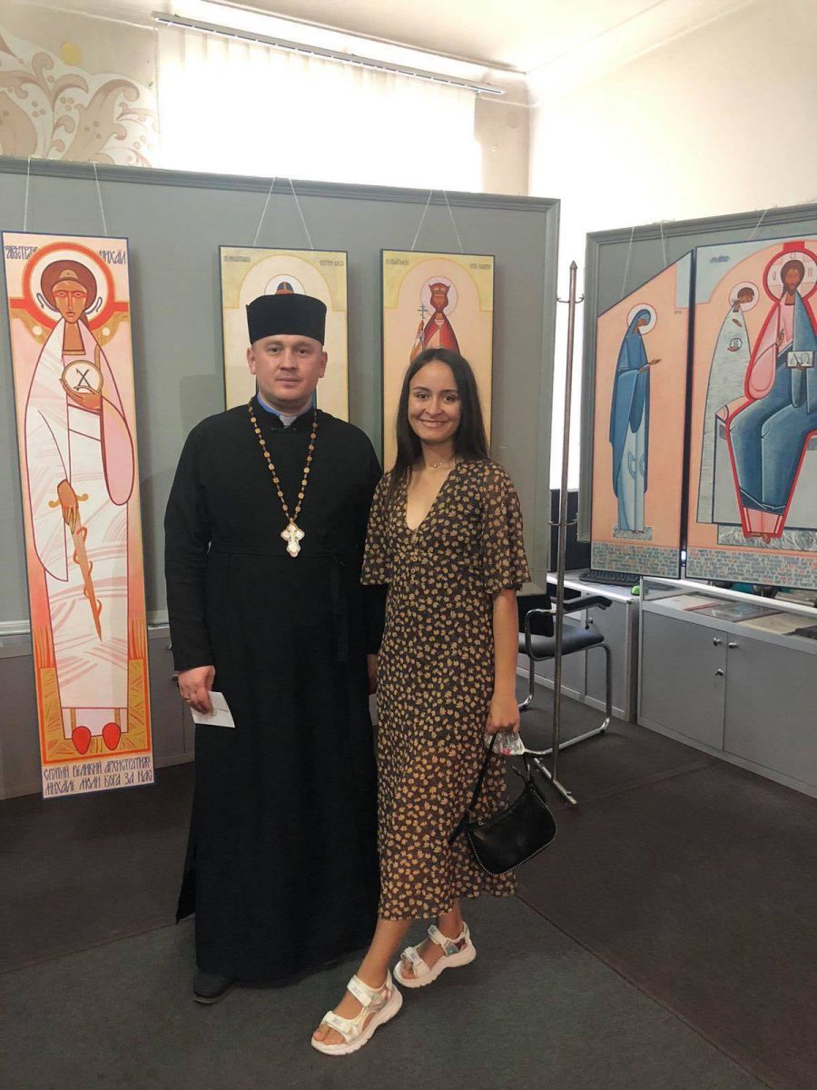 Отець-настоятель храму святого Архистратига Михаїла УГКЦ, протоієрей Іван Бігун ознайомив дітей із мистецтвом Юлії Багринівської та розповів дітям про святих, які зображені на іконах. Митці зображають за допомогою певних ознак, символів Особу Христа, Богородицю, ангелів і святих. Тож, від споглядання символів і знаків ми підносимося до споглядання осіб, явлених в іконі. Молитва перед іконою є спілкуванням з тим, хто на ній зображений. Через ікону Бог звертається до людини, виявляє її покликання і покликає її до життя з ним. «Побачити» Бога, який з ікони з любов’ю дивиться на нас, — це великий дар Божий, явлення «неба на землі».