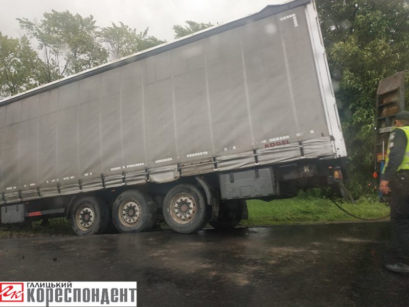 Внаслідок зіткнення одна з вантажівок з’їхала у кювет і зазнала пошкоджень. Жоден із водіїв не постраждав. Аварія сталася на мокрій дорозі під час дощу.
