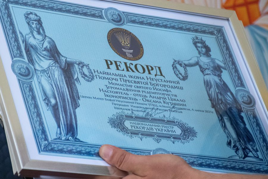У храмі встановили рекорд України в категорії "Мистецтво" — найбільша ікона Матері Божої Неустанної Помочі, писана на дереві. Працювала над іконою понад пів року художниця Оксана Кузишин, інформують "Вікна".
