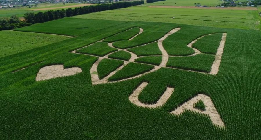 Полігон аграрних інновацій неподалік Києва та за 12 кілометрів від аеропорту Бориспіль і його поля добре видно з вікон літаків, які пролітають над ними. Тож гості країни чи ті, хто повертається додому, вже можуть бачити «живий» герб України, створений на полі.