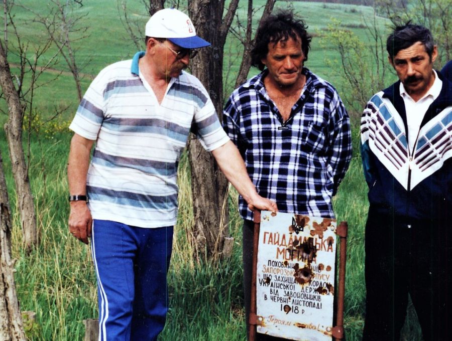 ㅡ Я працював помічником комбайнера, і коли комбайн тут проїжджав, спитав, що то за могила. ㅡ «Гайдамацька». Спитав у школі ㅡ але ж тоді про гайдамаків якщо й згадували, то тільки про тих, що діяли в Центральній Україні в середині XVIII століття. А вже потім відомий наш краєзнавець Ігор Саєнко дав мені матеріали з УкраїнськоㅡКанадського центру. Він познімав ксерокопії зі спогадів генерал-хорунжого Олександра Натієва та інших людей, які згадували про перебування на цій території Запорозького корпусу.
