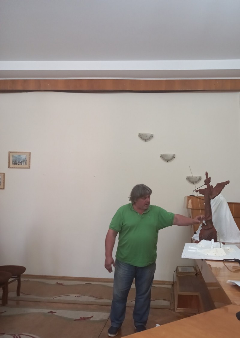 Художник Володимир Романів представив альтернативний варіант ескізу скверу. А скульптор Богдан Гладкий, який приїхав на запрошення спілки воїнів АТО/ООС Калущини, представив оригінальний проєкт бульвару, який символізує карту України.