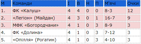 В іншому матчі п'ятого туру Рогатинці зуміли вистояти проти «Легіону» лише у першому таймі, а по перерві голи Романа Шуляра і досвідченого Богдана Павлюка (двічі) оформили комфортну перемогу гостей.